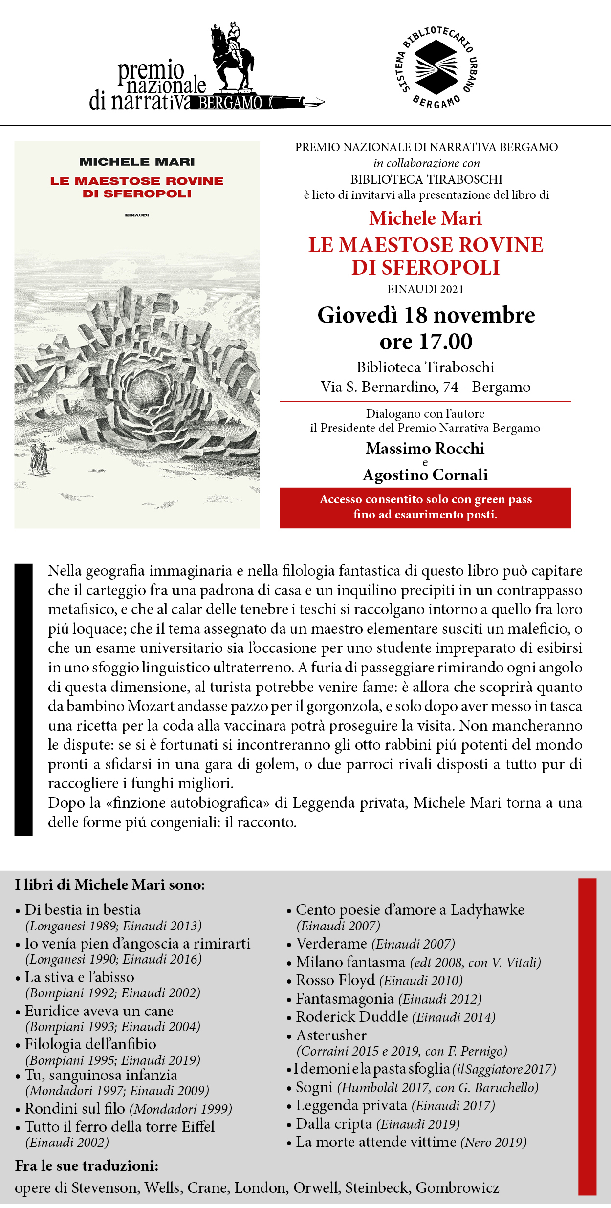 Segnatevi la data, non mancheranno le sorprese e soprattutto le competenti analisi di due grandi scrittori e filologi come Michele Mari e Silvia De Laude.