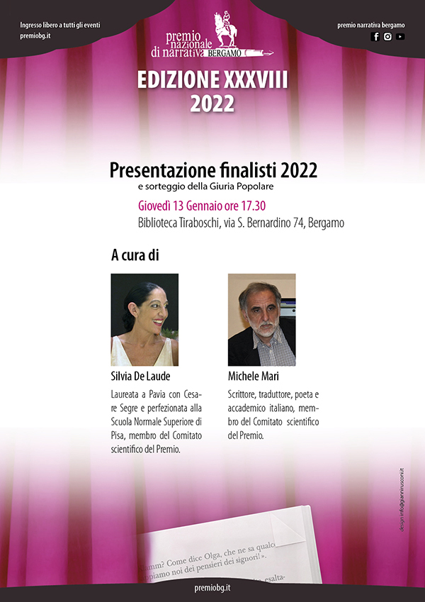 Scopriremo i cinque finalisti di quest’anno nel corso della presentazione pubblica, in presenza finalmente, pur con tutte le osservanze del caso, dal green pass rafforzato alle mascherine ffp2.