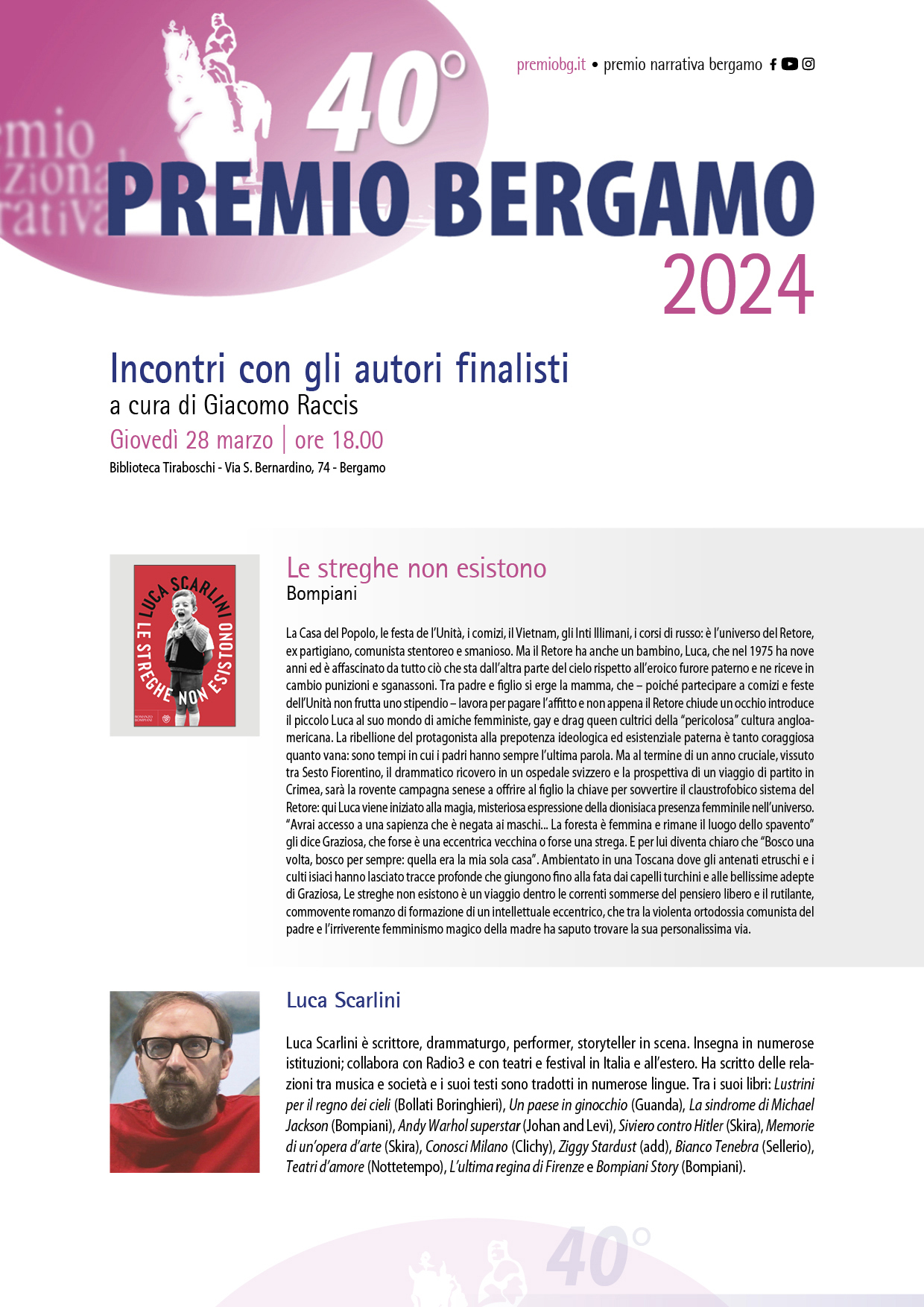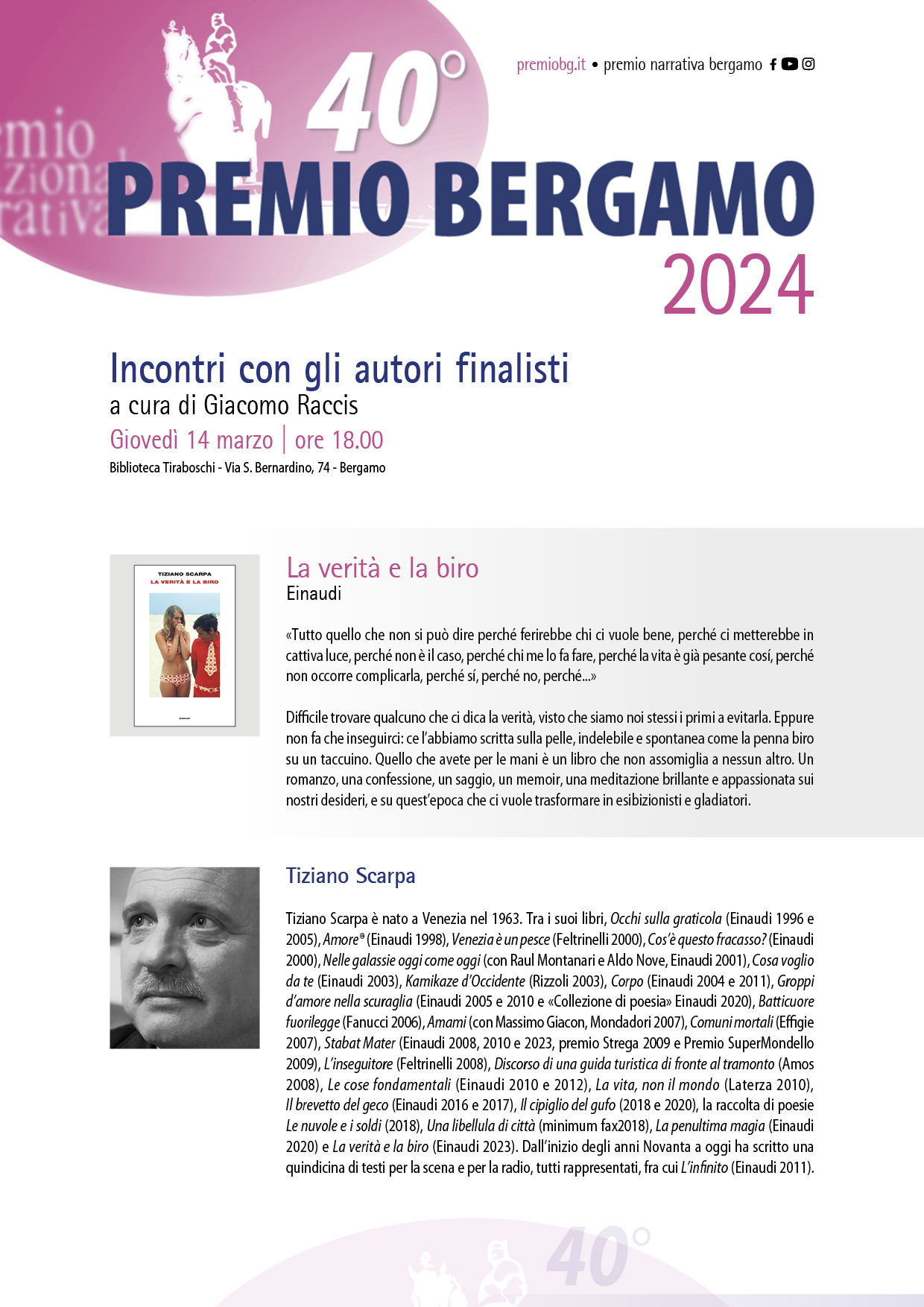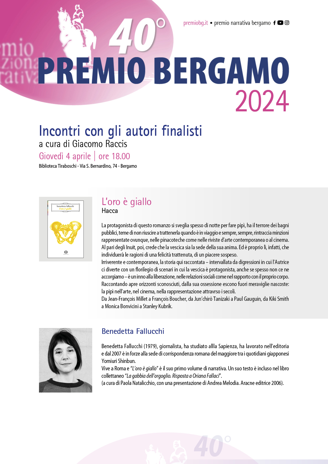 I giurati possono ritirare i libri omaggio presso la biblioteca Tiraboschi di Bergamo, eventualmente anche tramite delega ad altra persona.