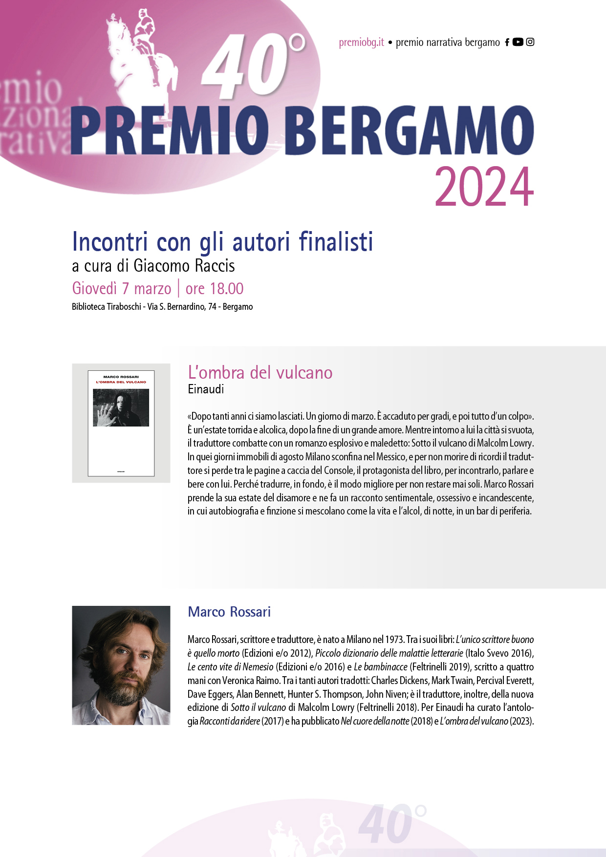 All’ombra del vulcano racconta la storia di un uomo (molto simile a Rossari) impegnato a tradurre Sotto il vulcano di Malcolm Lowry, romanzo modernista intriso di alcool e disperazione (effettivamente tradotto da Rossari per la nuova edizione Feltrinelli), e al contempo affrontare la fine di una lunga relazione.