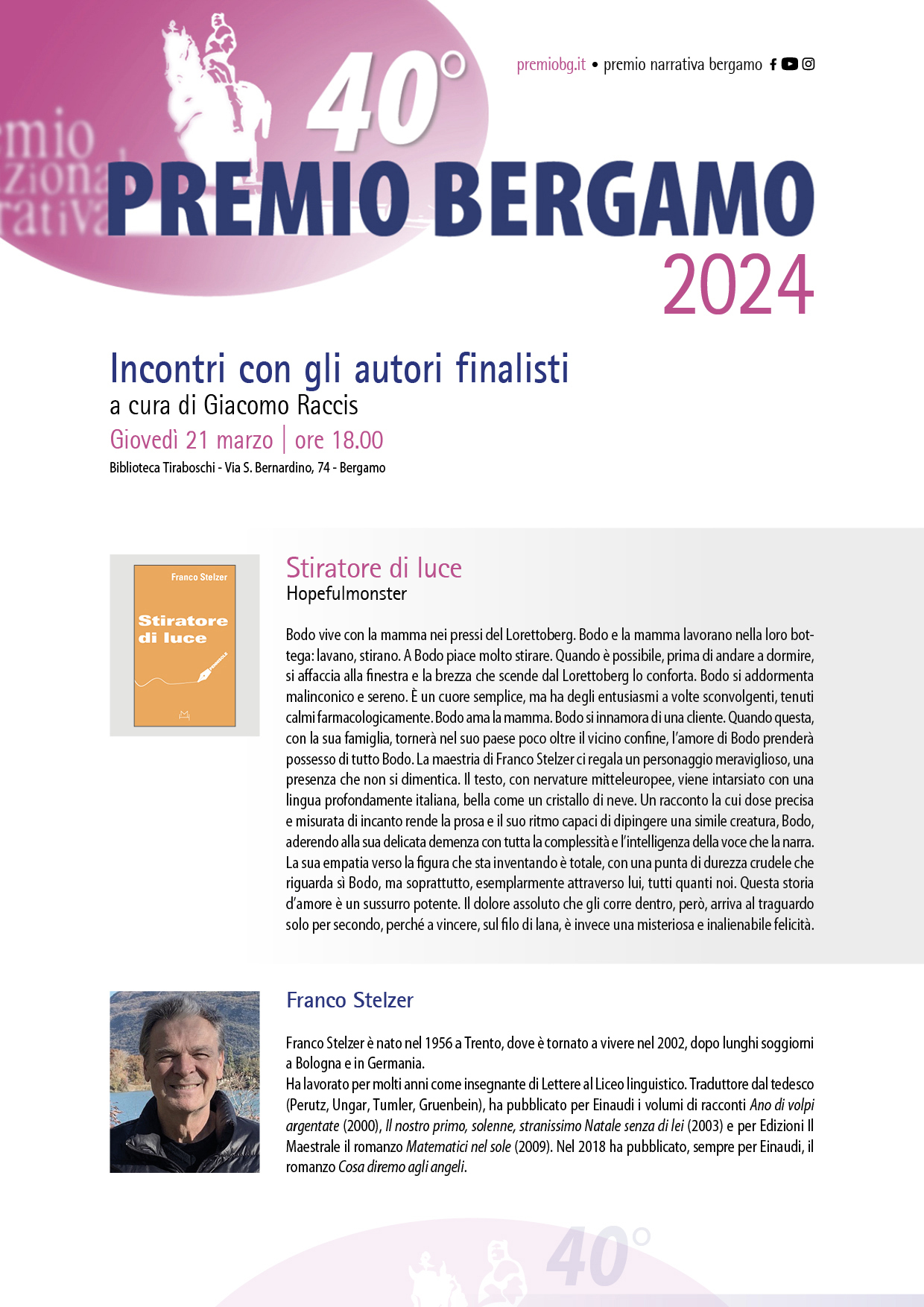 Franco Stelzer torna al Premio Bergamo con un libro esile e delicato, Stiratore di luce.